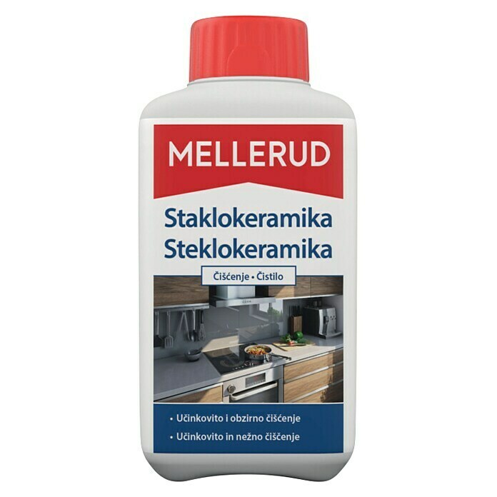 Mellerud sredstvo za čišćenje staklokeramičkih ploča za kuhanje čini čišćenje ploče za kuhanje lakim i praktičnim. Temeljito i nježno uklanja i najtvrdokorniju prljavštinu i ostatke koji su zagorjeli tijekom kuhanja. Ostavlja sjaj bez mrlja i nanosi dugotrajni zaštitni sloj na površinu koji sprječava daljnje zagorijevanje hrane na površini za kuhanje, a ujedno štiti ploču od oštećenja. Sredstvo je pogodno za sve staklokeramičke i indukcijske ploče.