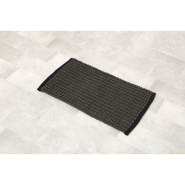 Dok uranjate stopala u mekoću ovog pamučnog tepiha i osjećate kako se stres dana topi, dopustite da luksuzna udobnost i bezvremenska elegancija tepiha poboljšaju Vašu svakodnevnu rutinu i transformiraju Vašu kupaonicu u utočište opuštanja. Dizajniran za praktičnost kao i za udobnost, pamučni tepih ima iznimnu sposobnost upijanja, brzo upija vlagu kako bi podovi bili suhi i spriječili klizanje i padove. Njegova svojstva brzog sušenja osiguravaju da tepih ostane svjež i higijenski, pružajući čisto i ugodno okruženje za kupaonicu. Kombinacija kaki i crne boje daje kupaoni elegantan i moderan izgled. Dimenzija: 45x75cm.